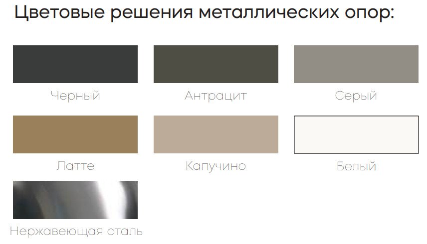 Цвет металлических опор: Черный, Белый, Антрацит, Серый, Латте, Капучино.